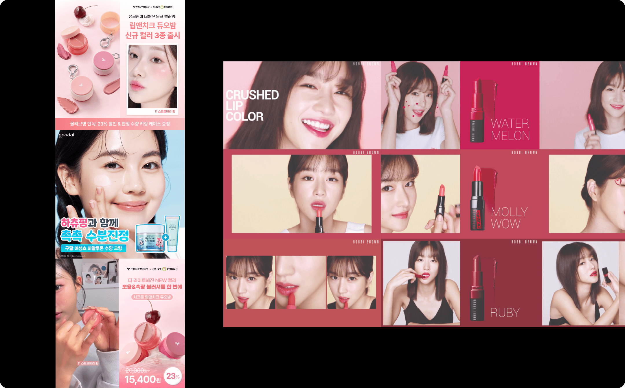 뷰티 브랜드 마케팅에서 가장 빠르게, 가장 많이 소모되는 디자인은 광고 배너입니다. 메시지가 바뀌면 디자인도 바뀌고, 타깃이 바뀌면 또 다른 소재가 필요해요. 그래서 이 영역의 핵심은 한 장의 완성도가 아니라 여러 시도를 빠르게 만들어 낼 수 있는 디자인입니다.